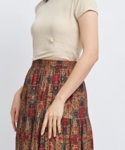 Details: – Tencel linen, layered design – High-waisted cut with a long skirt silhouette, A-line flared hem – Vintage print (red, gold, and blue tones) – Vintage artistic ,Oriental elegance , Natural drape Model B is 170cm tall, wears size S Please allow 20-30% discrepancy in the product colour due to lighting and monitor resolution. [...]