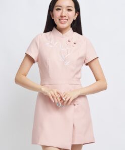 Details: – Suit fabric, moderate thickness, elegant matte sheen, high-quality feel. 【 Upper body】 Chinese-style stand-up collar short sleeves, slim fit. 【Lower body】 Skirt in the front, trousers in the back, A-line silhouette. – Three-dimensional embroidered bamboo leaf pattern on the chest, symbolizing elegance and resilience. – Exquisite Chinese-style knotted buttons. Model B is 170cm [...]