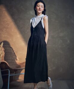 Details: 【  SET  : Silk Cotton Top and Cotton and Linen Sling Dress 】 【 Top Fabric & Design 】 – Silk Cotton fabric, Slim Fit – Stand-up collar with ruffled cuffs for a refined and elegant look 【 Dress Fabric & Design 】 – Cotton and Linen fabric, Sling A-line maxi dress – Fitted [...]