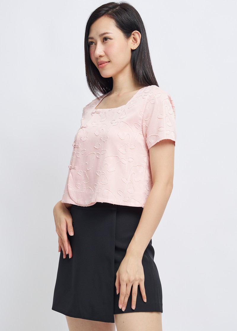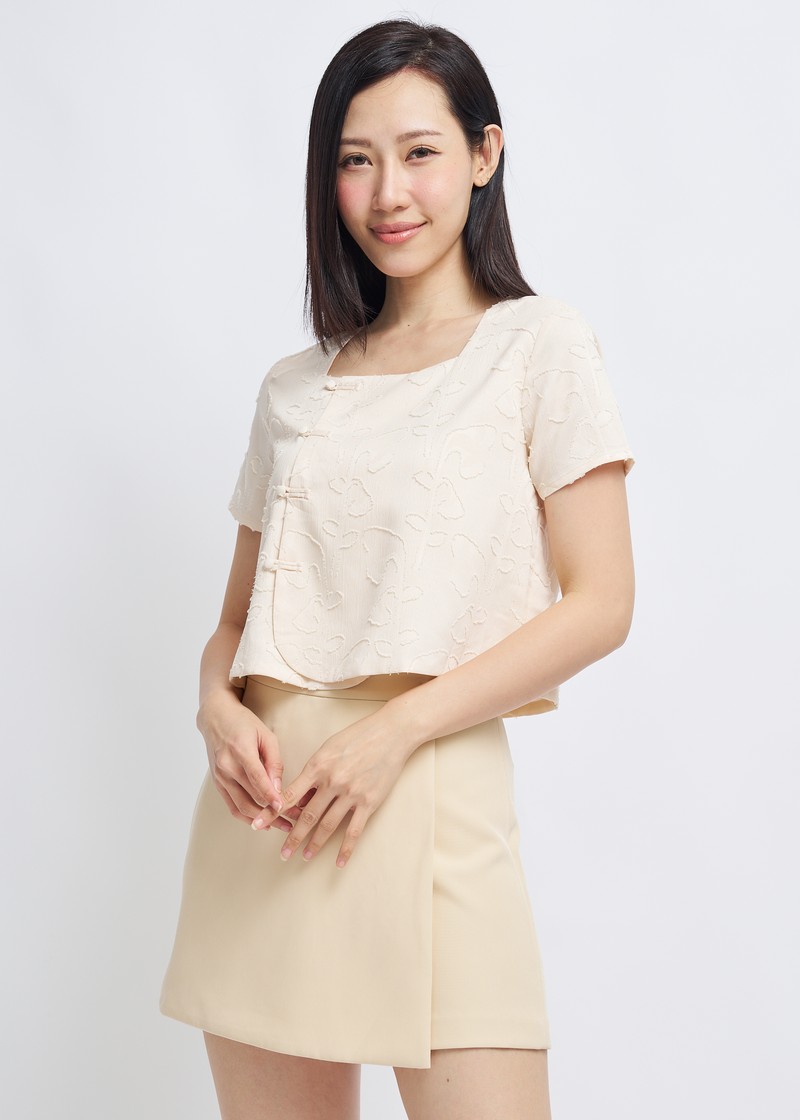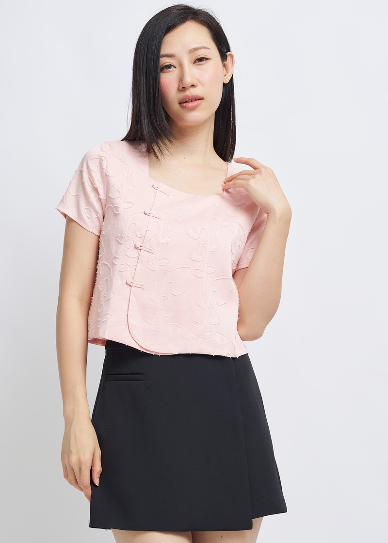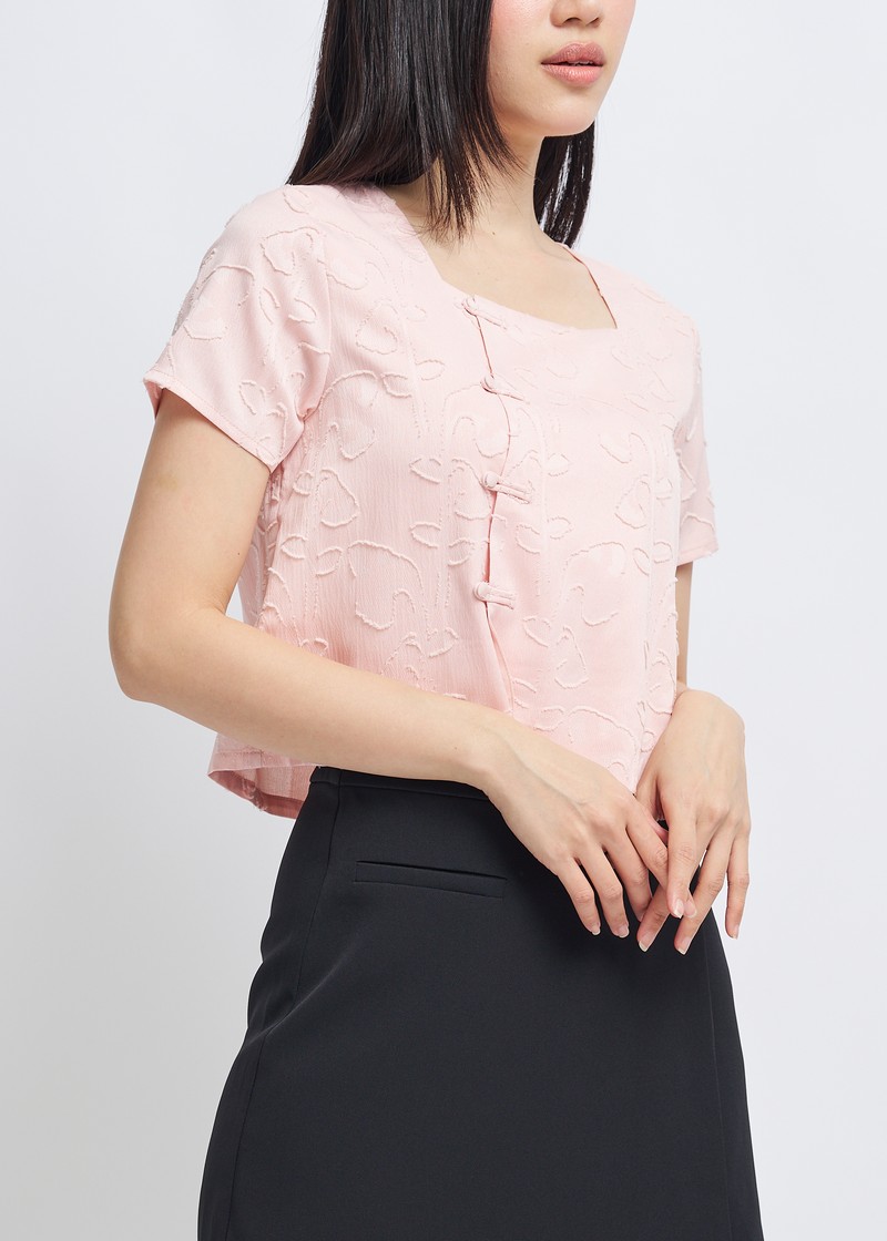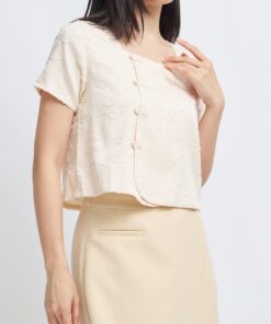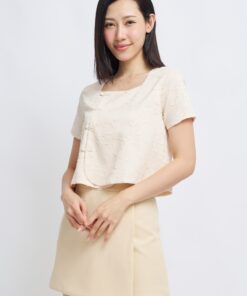 – High-quality jacquard fabric, square neckline design, short and loose fit.
