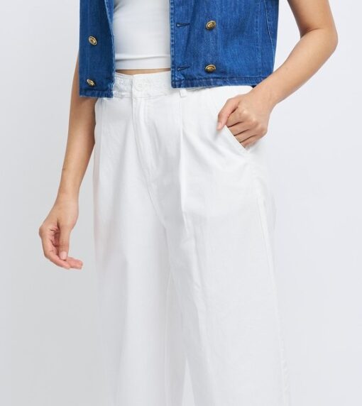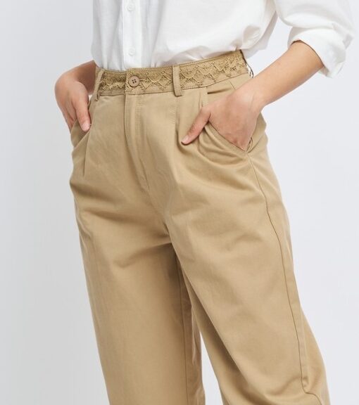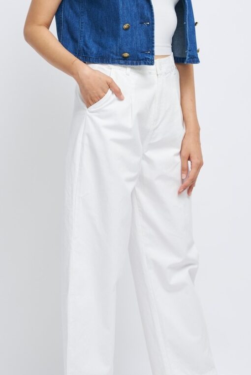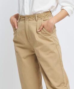 – Washed cotton straight-leg pants with a button and zipper closure and side pockets.