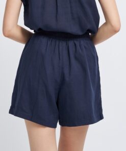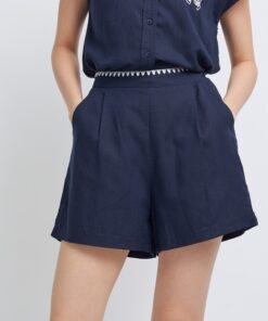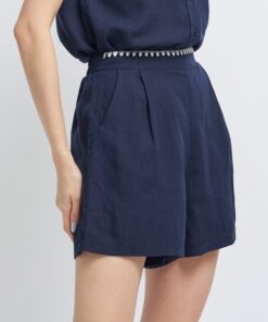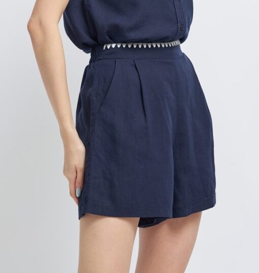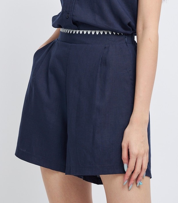 – High-waisted shorts with elasticated back and contrasting serrated edges at the waist