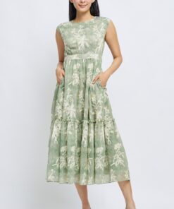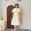 – Sleeveless design, slim fit, slight pleats and waist design, A-line skirt