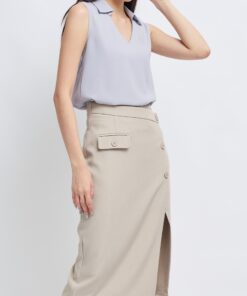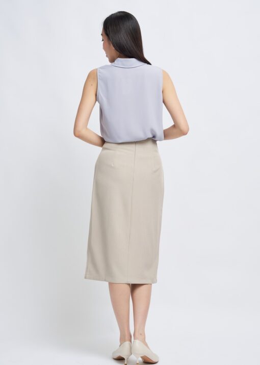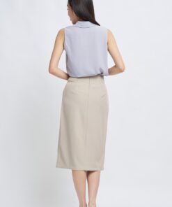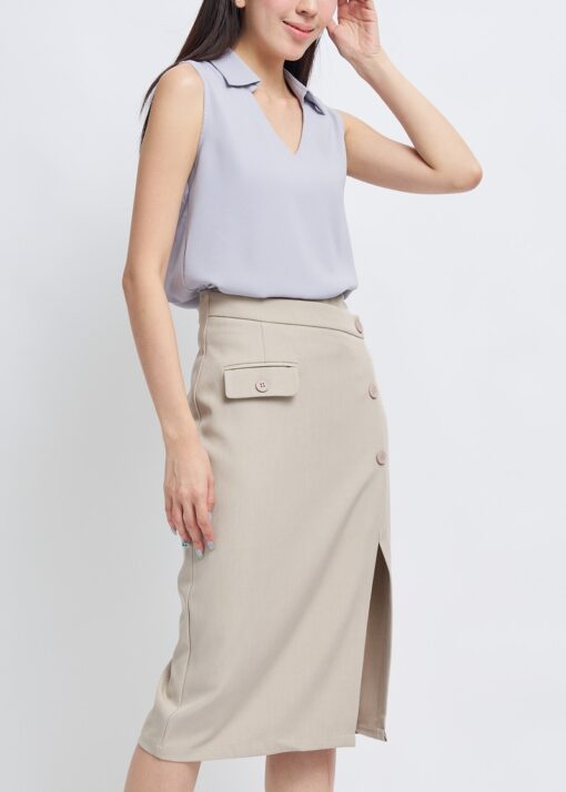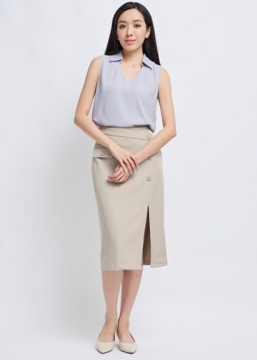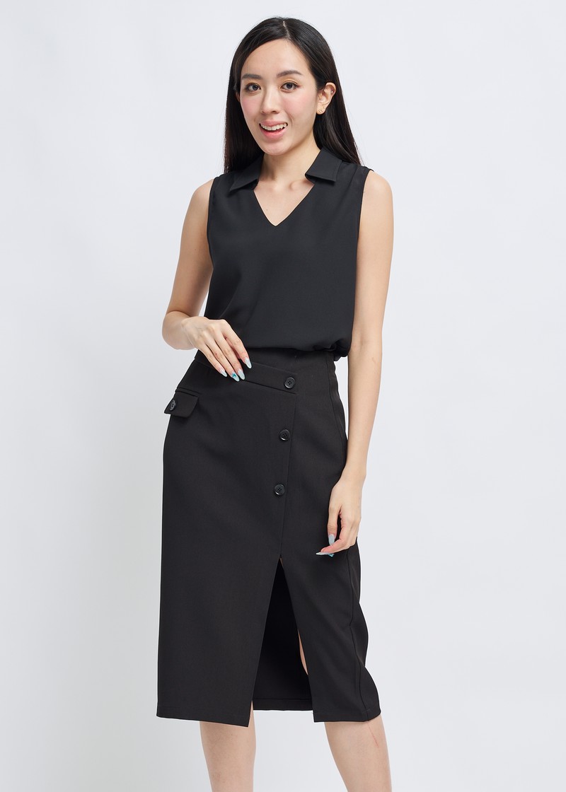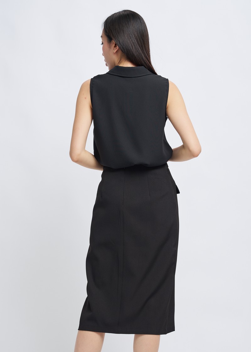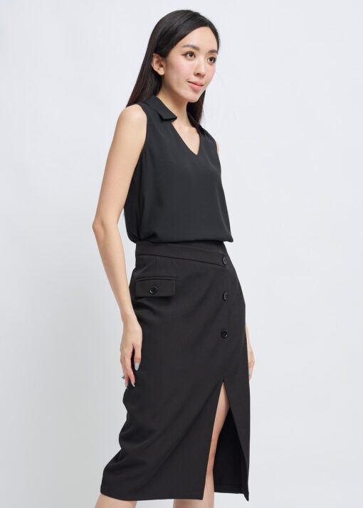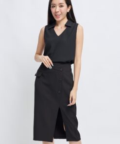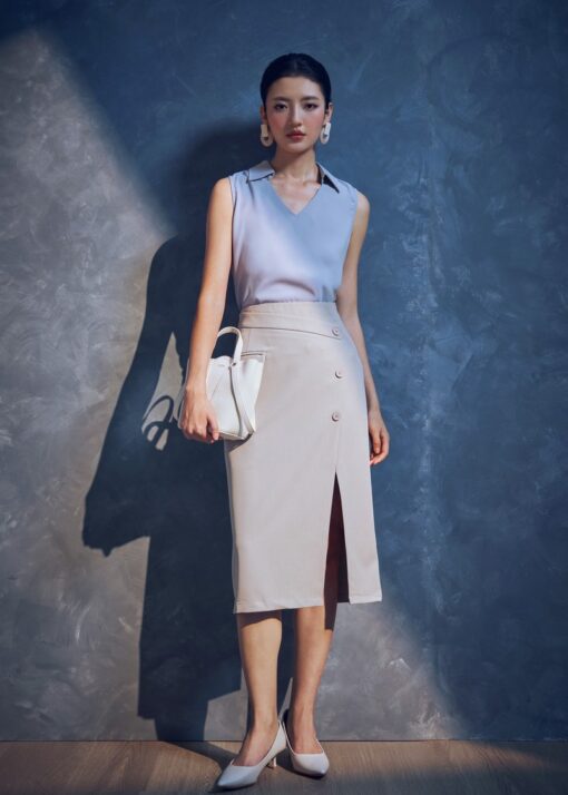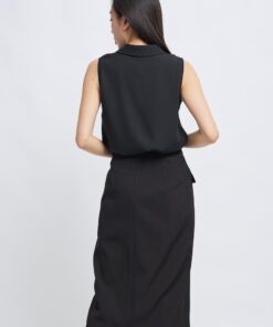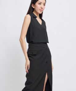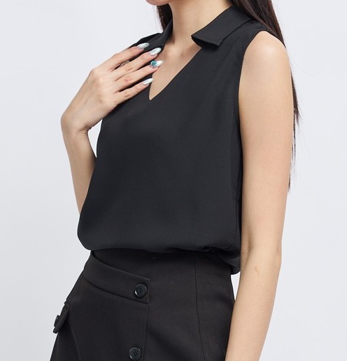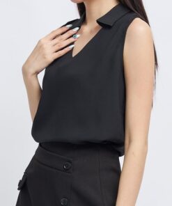– Sleeveless lapel V-neck design, straight-cut fit, elegant and capable temperament