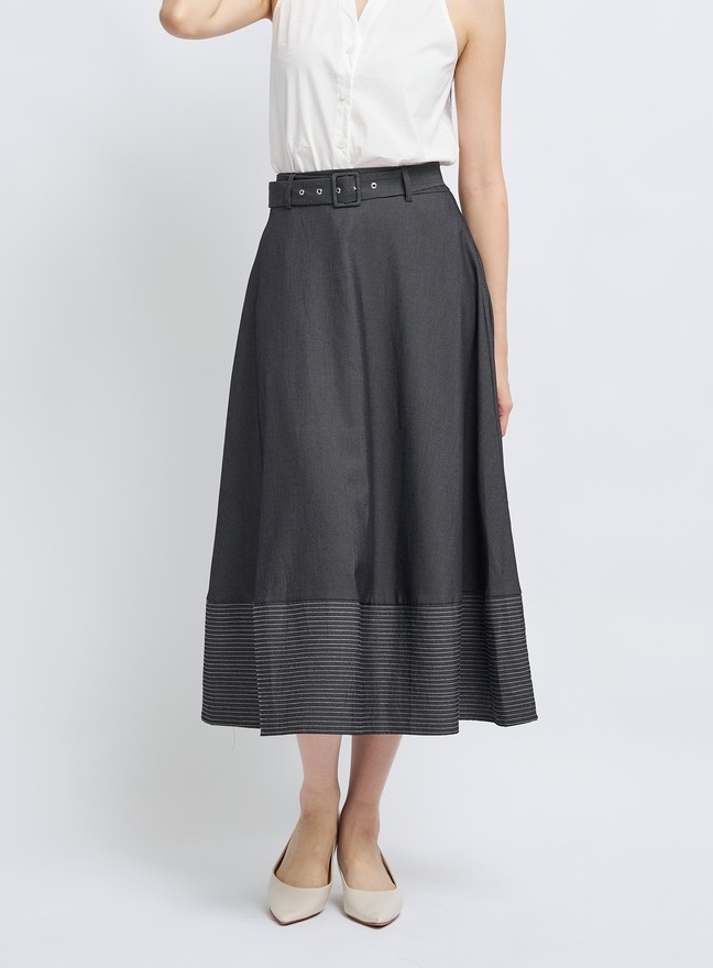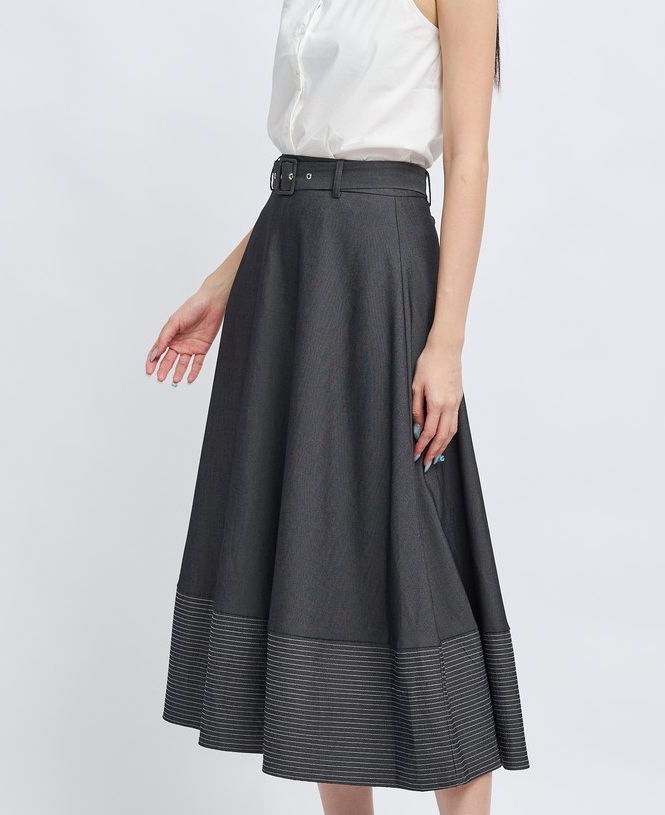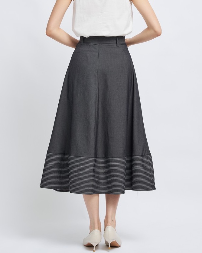 – Fine striped weave design on the skirt hem.