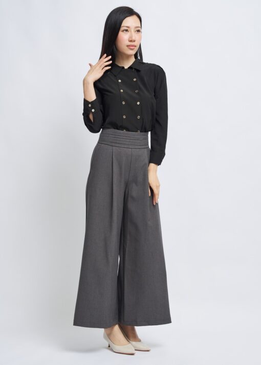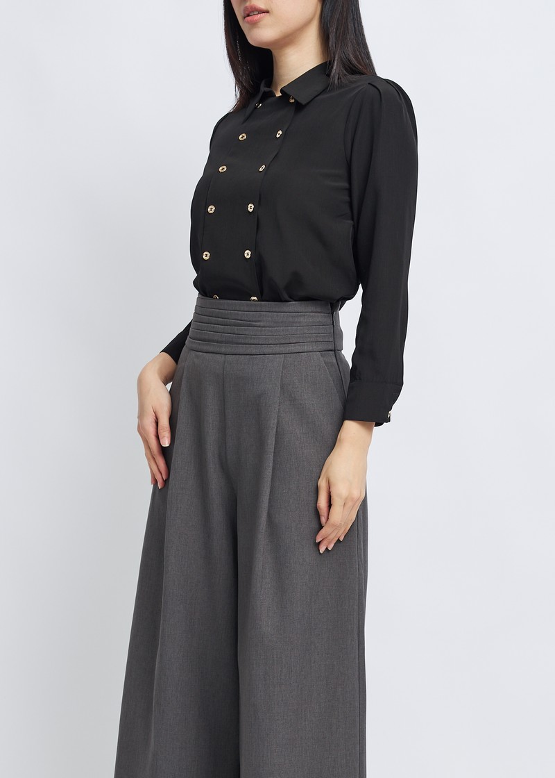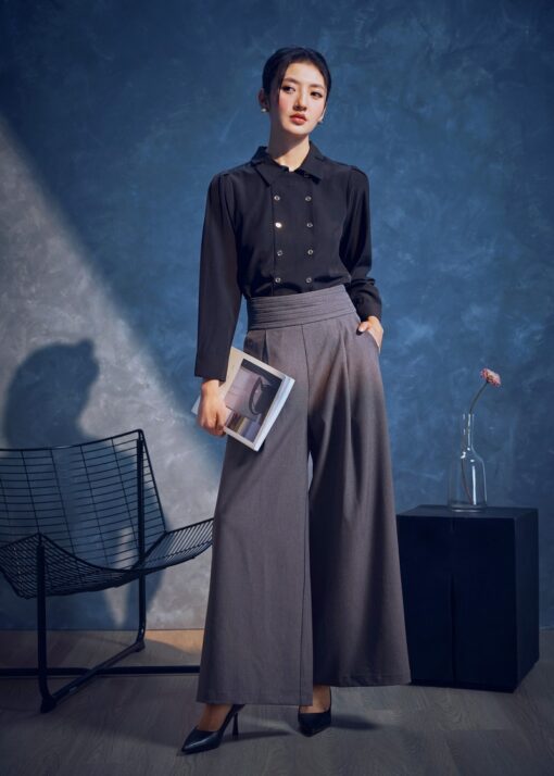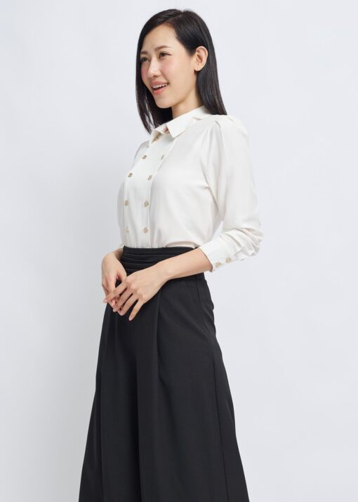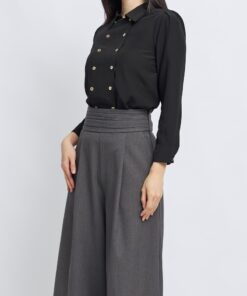 – Stand-up collar shirt style with gold double-breasted buttons, with exquisite luster and fashionable layering