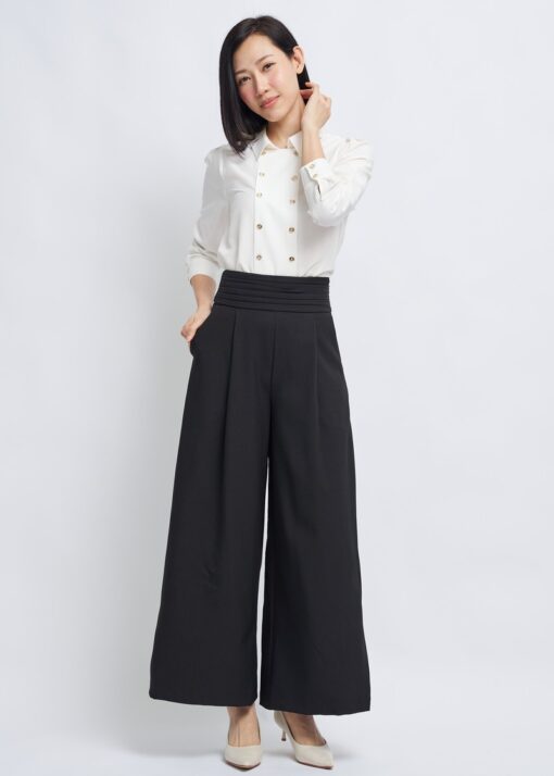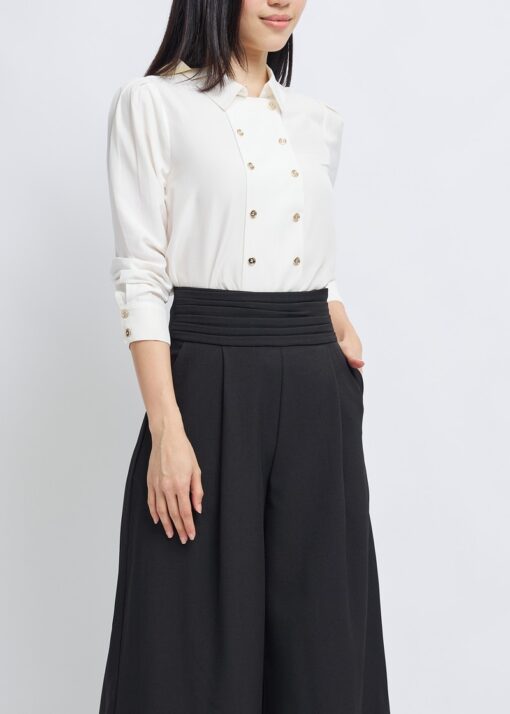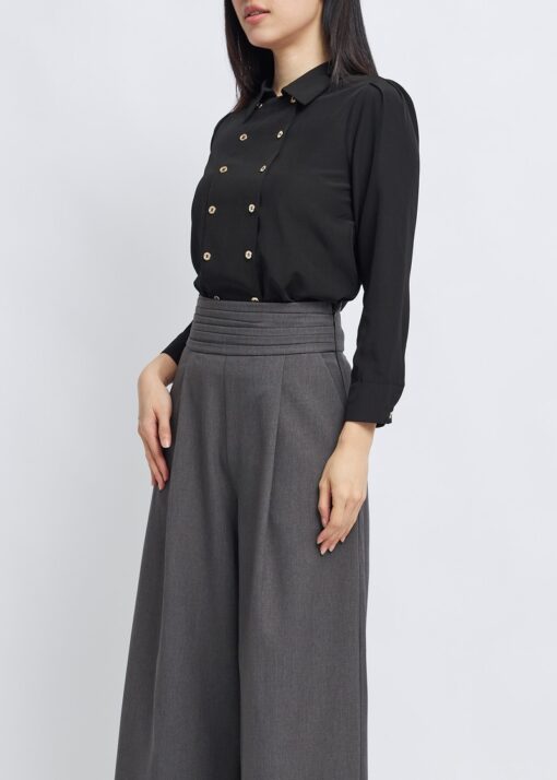 – Symmetrical layout of the front center buttons to modify the body proportions, with slightly puffed shoulders