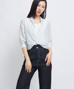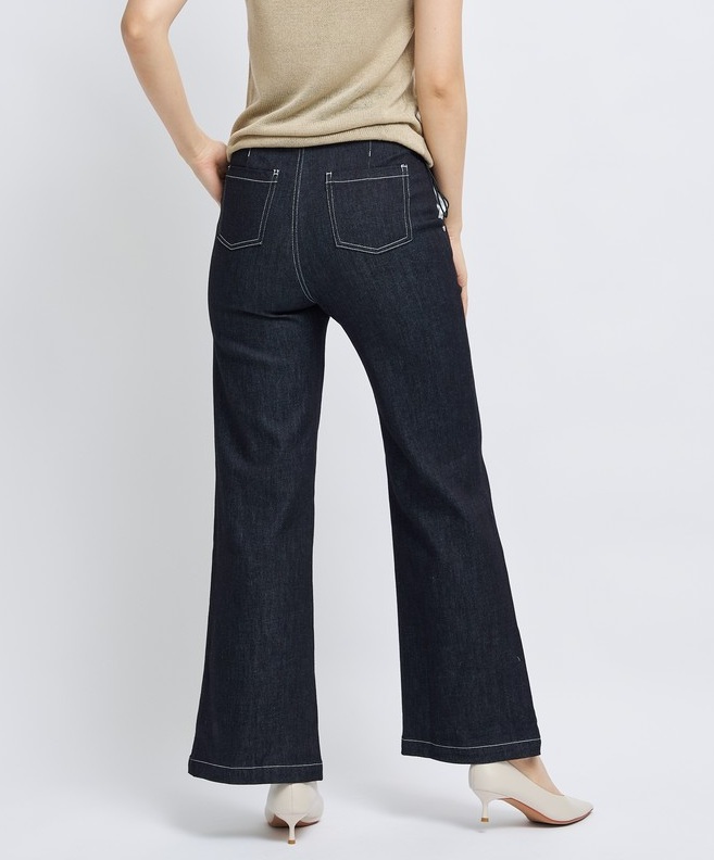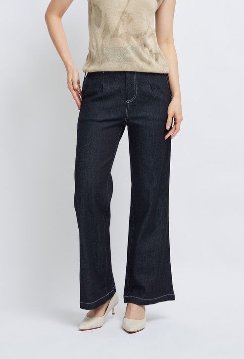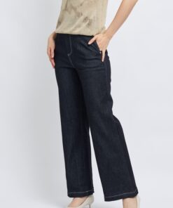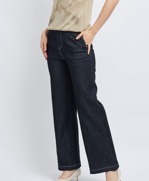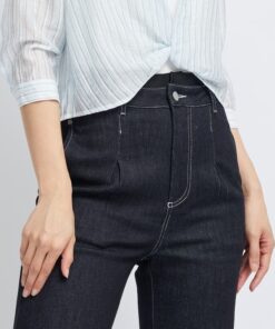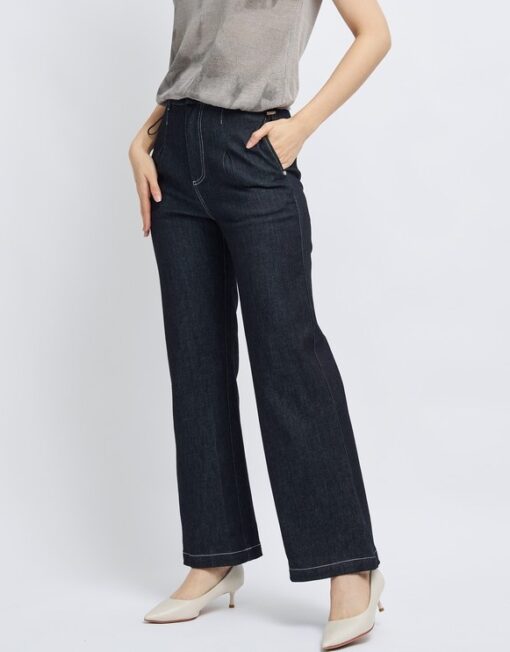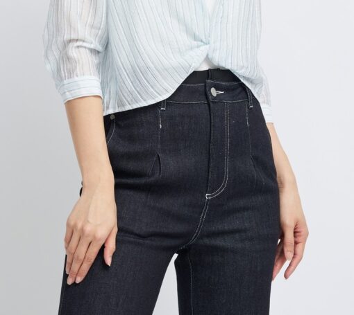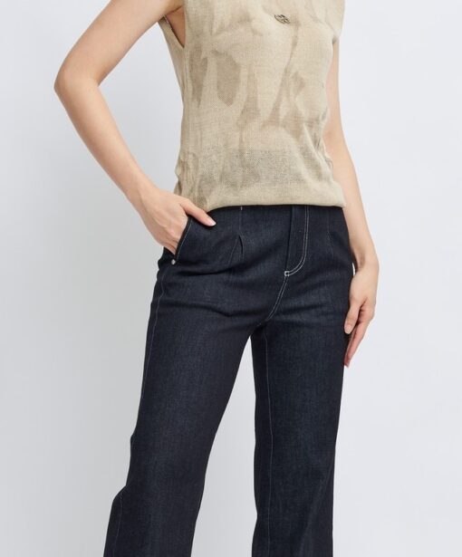 – Denim fabric, high-waisted, straight-leg silhouette (Straight Wide-Leg), retro and sophisticated style